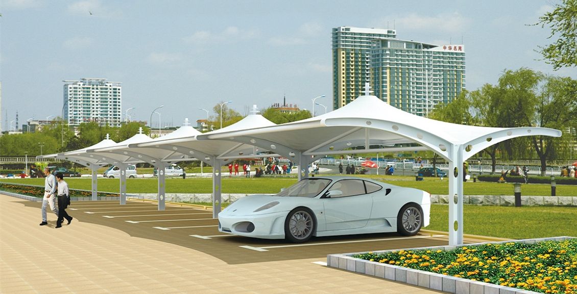 一、膜結(jié)構(gòu)車棚是以建筑織物,即膜材料為張拉主體,與支撐構(gòu)件或拉索共同組成的結(jié)構(gòu)體系,它以其新穎獨特的建筑造型,良好的受力特點——成為大跨度空間結(jié)構(gòu)的主要形式之一。膜材料是指聚酯纖維基布或PVDF、PVF、PTFE等不同的表面涂層,配以優(yōu)質(zhì)的PVC組成的具有穩(wěn)定的形態(tài),并可承受一定載荷的建筑紡織品。它的壽命因不同的表面涂層而異。